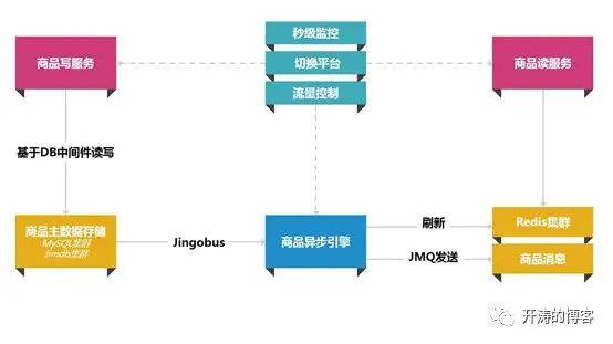 写服务设计时架构师尤凤凯充分考虑了扩展性、可复用性,实现了模块可配置化。基于商品介绍、扩展属性、规格参数、特殊属性等基础组件,可灵活组配不同的业务流程。使用了京东自主研发的SAF中间件,其支持负载均衡、自动故障切换、流量控制、黑白名单等特性,并且在性能方面表现优异。